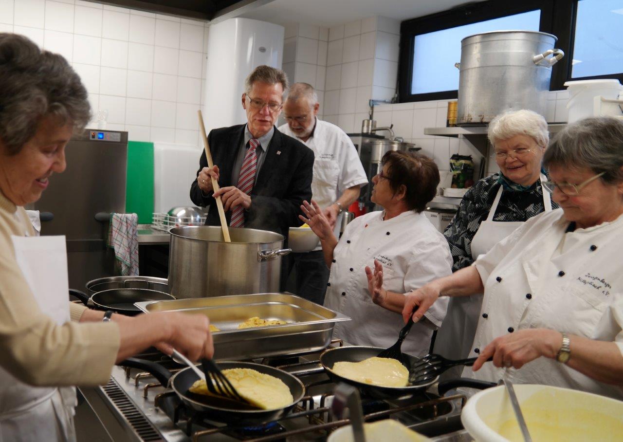 Eierpfannkuchen) servierten . Anderen etwas Gutes tun, haben sich die Köche und ihre Helfer zum